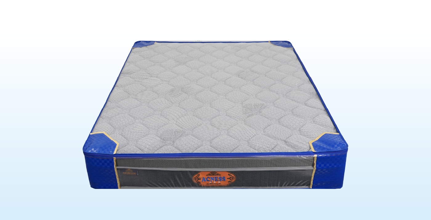 • Nệm được cấu tạo bởi hàng trăm túi lò xo độc lập, làm từ thép không gì đạt tiêu chuẩn Châu Âu. Các con lò xo đặt trong những túi vải không dệt mang lại kết cấu chắc chắn cho tấm nệm.